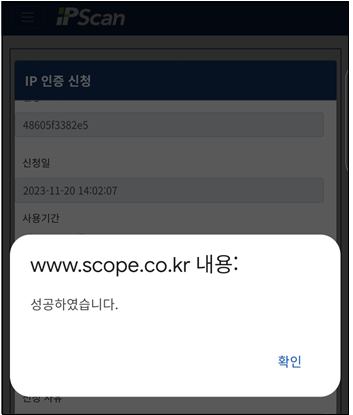 ‘IP 신청’ 버튼 클릭